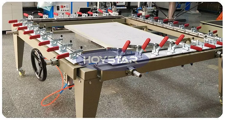 اسکرین اسٹریچنگ مشین ایلومینیم کھوٹ کے ذریعہ تیار کردہ اعلی طاقت کا فریم اپناتی ہے