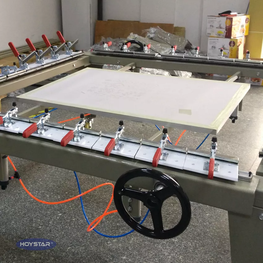 4. اسکرین اسٹریچر کا شیلف سائز اسکرین کپڑا اور اسکرین فریم کے طول و عرض کی بنیاد پر لچکدار طریقے سے ایڈجسٹ ہوسکتا ہے ، جس سے تیز اور آسان پوزیشننگ کو قابل بنایا جاسکے۔